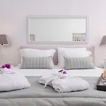The 5-star luxurious Aqua Luxury Suites By Nomee Hospitality Group Imerovigli hotel enjoys a picturesque location about a 5-minute walk from Church and features an archaeological museum. With views of the sea, the elegant aparthotel is situated 1.6 km from the Fira Archaeological Museum and offers a sundeck, spa therapy, and a shared lounge.
